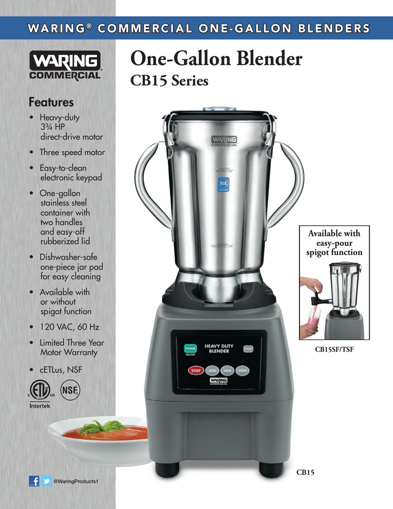 Waring, universally known for introducing the first blender in America, is one of today's leading manufacturers of professional appliances for the foodservice and laboratory industries. Waring Commercial offers high-performance, large-volume food processors and blenders, heavy-duty heating appliances such as grills, griddles, toasters and deep fryers, and a variety of specialty products. As a Solutions Specialist in the BLEND, PREP, COOK, and BREW categories, Waring strives to provide innovative, customized equipment to fulfill all of the industry’s unmet needs. With 80+ years of manufacturing expertise locally and globally, Waring is proud to offer continuously expanding collections of superior professional products.